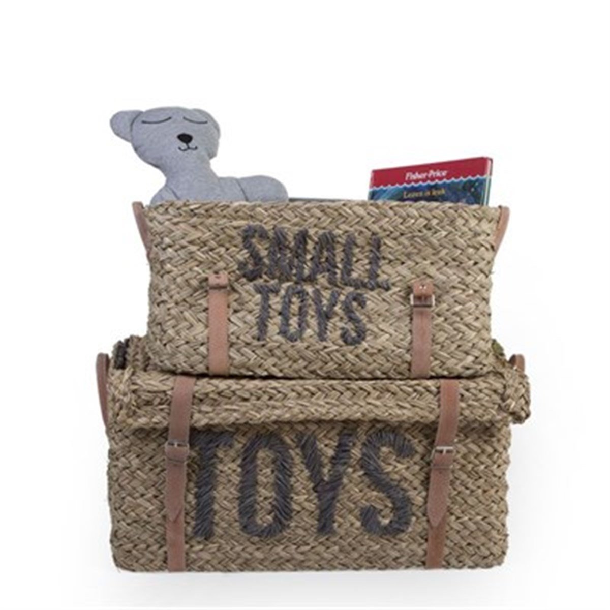 Oyuncak, giysiler, bebek bezleri ve diğer eşyalarınızı zarif bir şekilde düzenlemenin en iyi yolu: Sepetler… Boyutu itibariyle dolap içinde, şifonyer veya raf üzerinde rahatlıkla kullanılabilir. Hasır sepet, deniz yosunundan elle örülüp, sağlamlaştırılmak üzere dikilir. İç yüzeyi kumaş kaplıdır. Kapaklarında %100 deri detaylar mevcuttur.