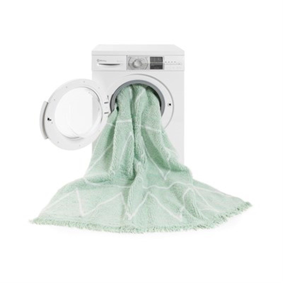 Halınızın ilk günkü görüntüsünü korumak için bazı önerilerimiz var. Halınızı 30 derecede düşük devirde çamaşır makinesinde yıkayabilirsiniz. Yıkama işlemi sonrasında düşük devirde kurutma makinesinde kurutma işlemi yapabilirsiniz ya da halıyı açarak doğal yollarla kurutmaya bırakabilirsiniz. Ancak direk güneş altında bırakılmamalıdır. Nem, renk akmasına sebep olabileceği için halınızı asla nemli şekilde makine içerisinde bırakmayınız. Yıkama esnasında ağartıcı, çamaşır suyu katkılı deterjan kullanmaktan sakınınız. Pamuklu yüzeyi dışarda tutarak makineye yerleştirmek yıkama sırasında dökülen pamukların suyla atılmasını sağlayacaktır. Makinenizin halı yıkamak için yeterli yer kapasitesi olduğundan emin olunuz.