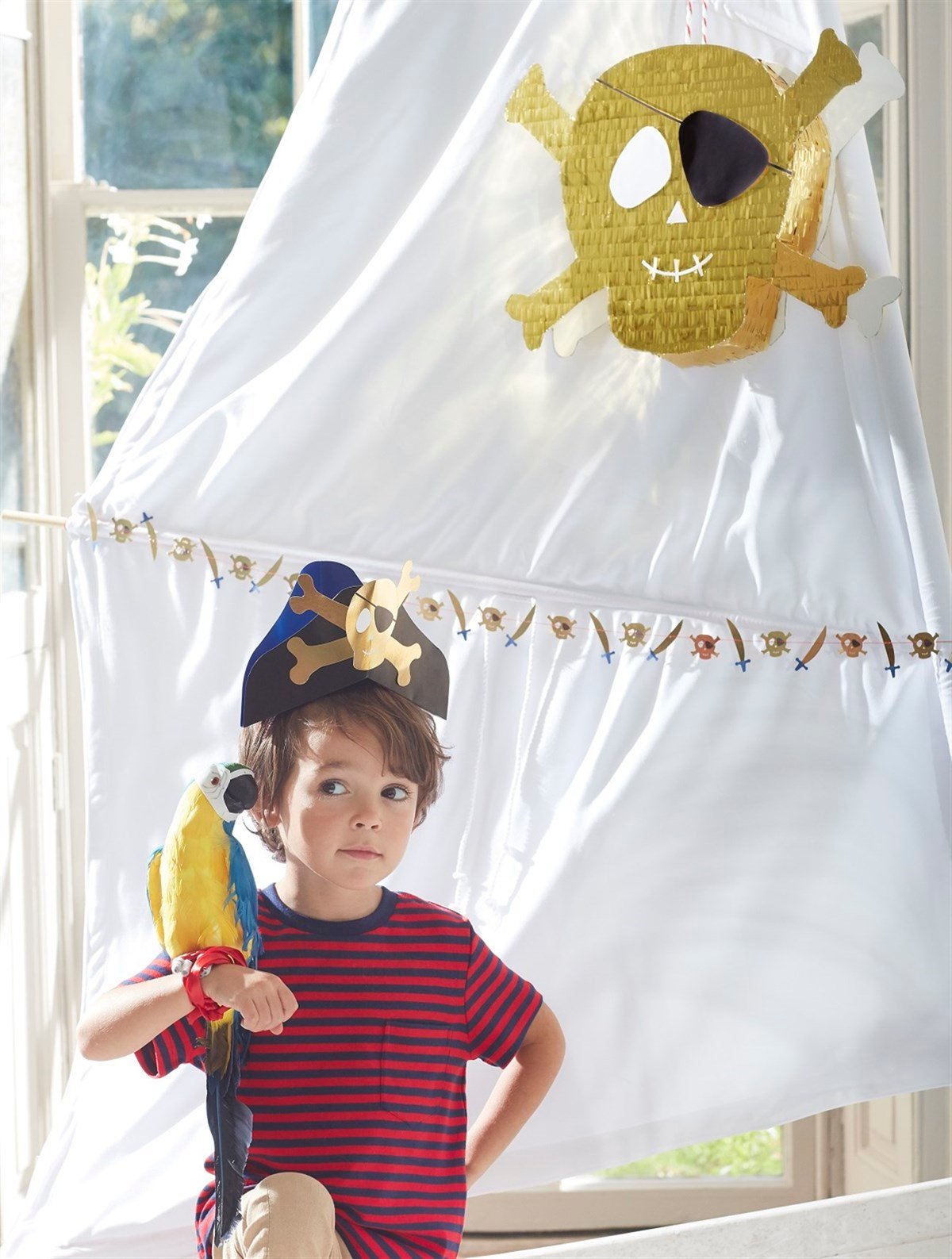 Korsan Temalı harika bir parti planlamak için gerekli olan masa düzenlemeleri, süslemeler, tebrik kartı, kostüm seti, aksesuarlar dâhil olmak üzere ihtiyacınız olan her şey: Meri Meri’de!